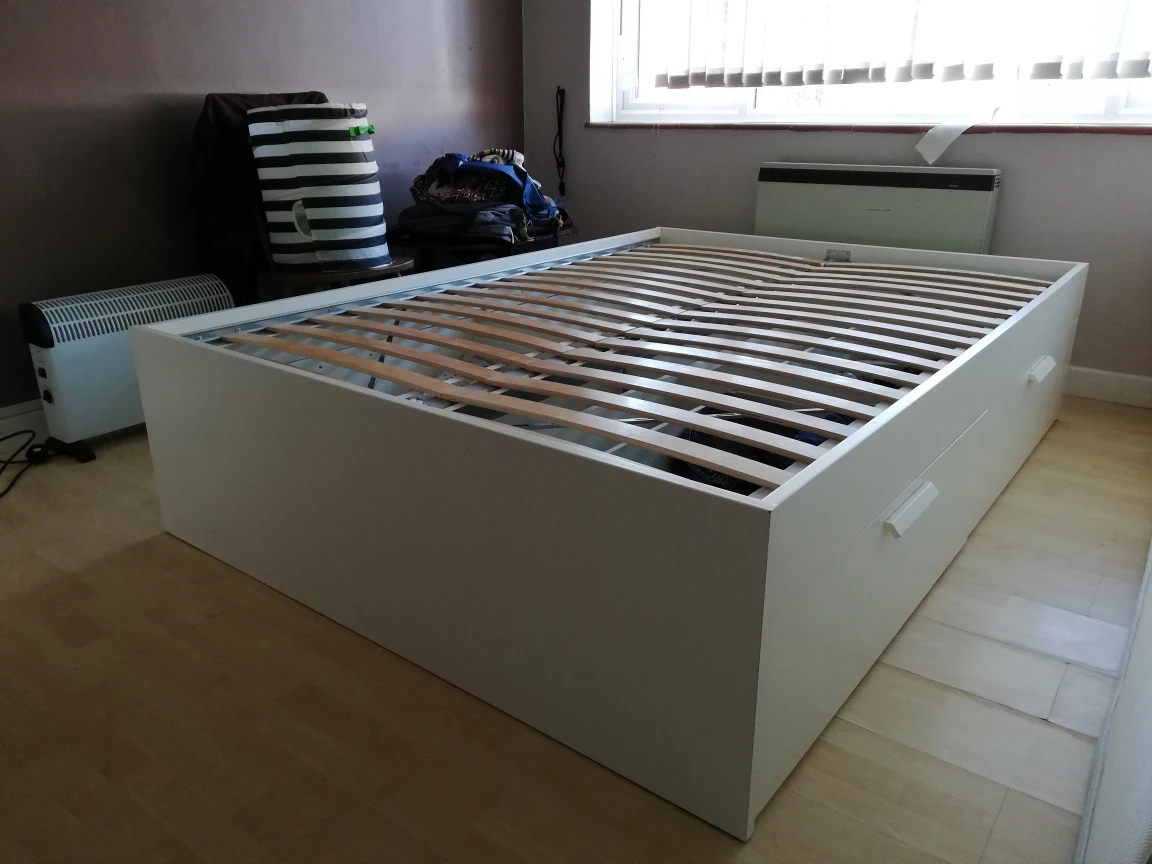 HomeBuy and sellStandard double bed frame with storage.DavidAPortswood00 reviewsSoldStandard double bed frame with storage.Furniture · £75Second hand IKEA Standard double bed (original name Brimnes). It comes with four handy storage compartments plus slatted bed base (Luroy). Pick up only.0 chats·0 favourites·43 viewsGet the Karrot app