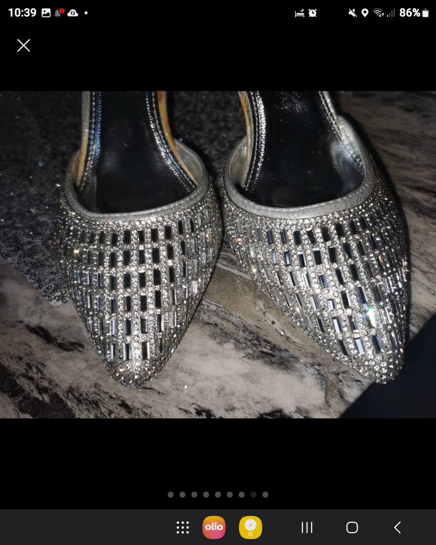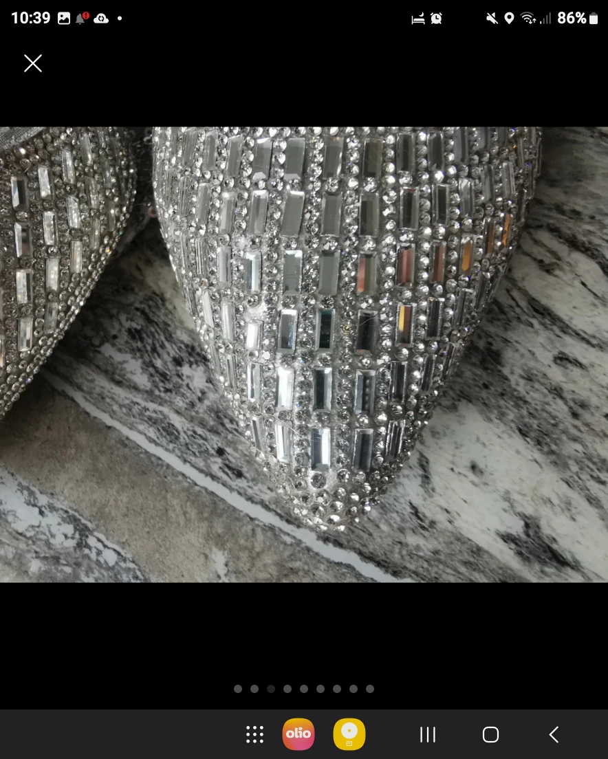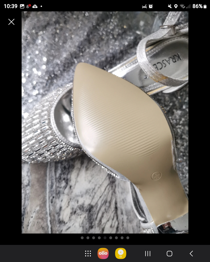 468 reviews🌹Bought these but only worn inside for a few hours as you can see by the soles 💖 Their is if you can see a little bit of silver off the strap but you cant see when they are on ❤️ They cost me £120 new so get a bargain 👠 Very very sparkly 💎