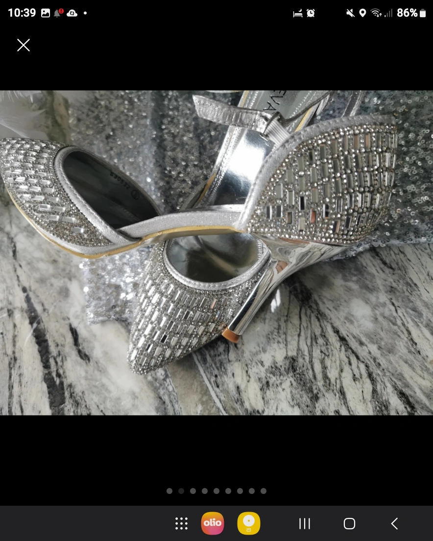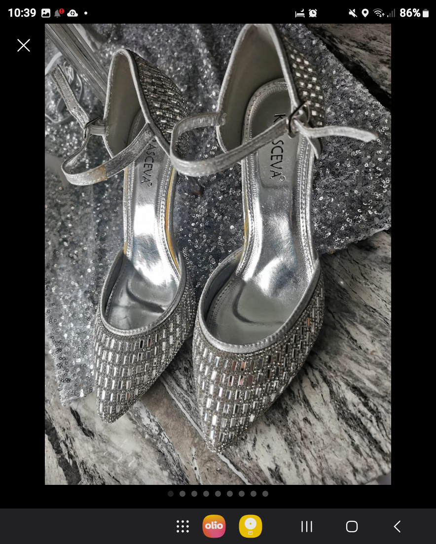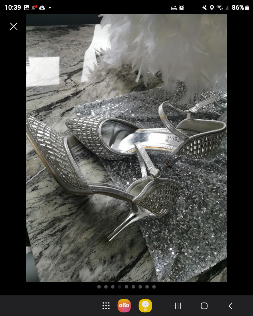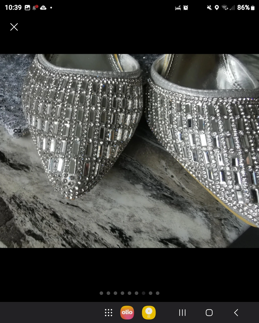 468 reviews🌹Bought these but only worn inside for a few hours as you can see by the soles 💖 Their is if you can see a little bit of silver off the strap but you cant see when they are on ❤️ They cost me £120 new so get a bargain 👠 Very very sparkly 💎
