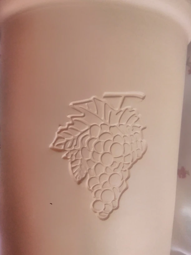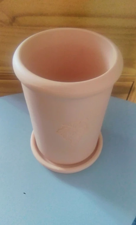 2 reviewsLight coloured terracotta pot with base stand and a berry design. Approximately measures 20cm (h) x 14cm dia. Can deliver in area
