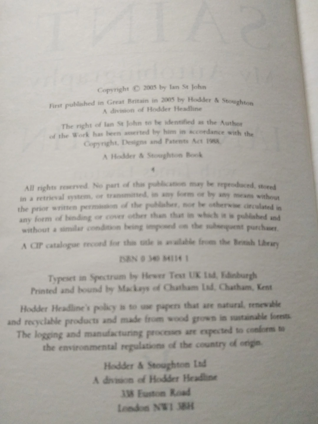 46 reviewsSigned - Liverpool player IAN ST JOHN The Saint - My Autobiography 4th print In great condition Price £25.00 o.n.o Pick up West Derby area liverpool We will post out to you if requested as long as the postage fee is agreed upon PayPal accepted Any questions please get in touch Thanks