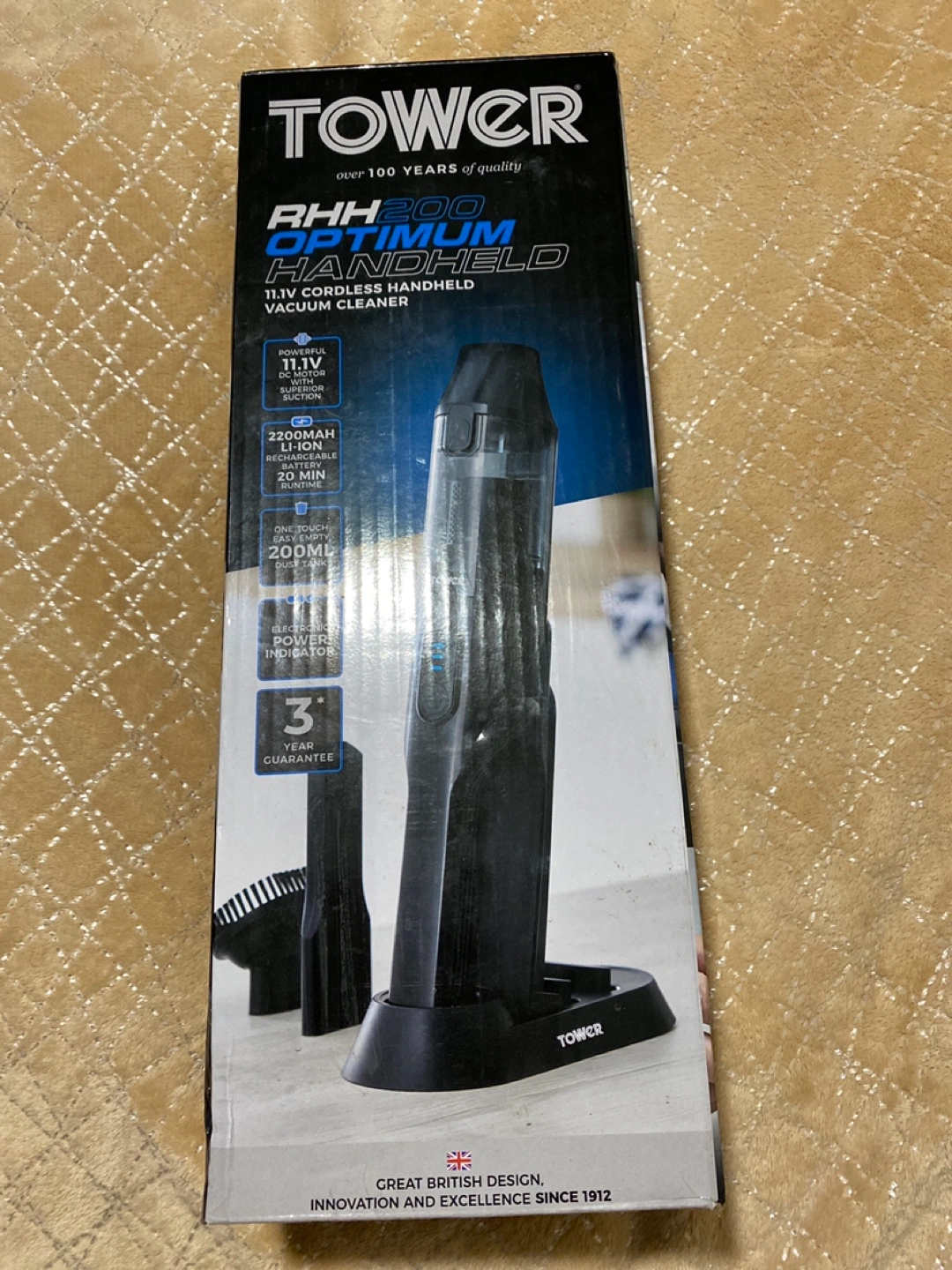 6 reviewsCordless handheld vacuum cleaner. 11.1V DC motor, superior suction. 2200mAh Li-ion rechargeable battery, 20-minute runtime. 200ml dust tank. One-touch easy empty. Power indicator. 3-year guarantee.