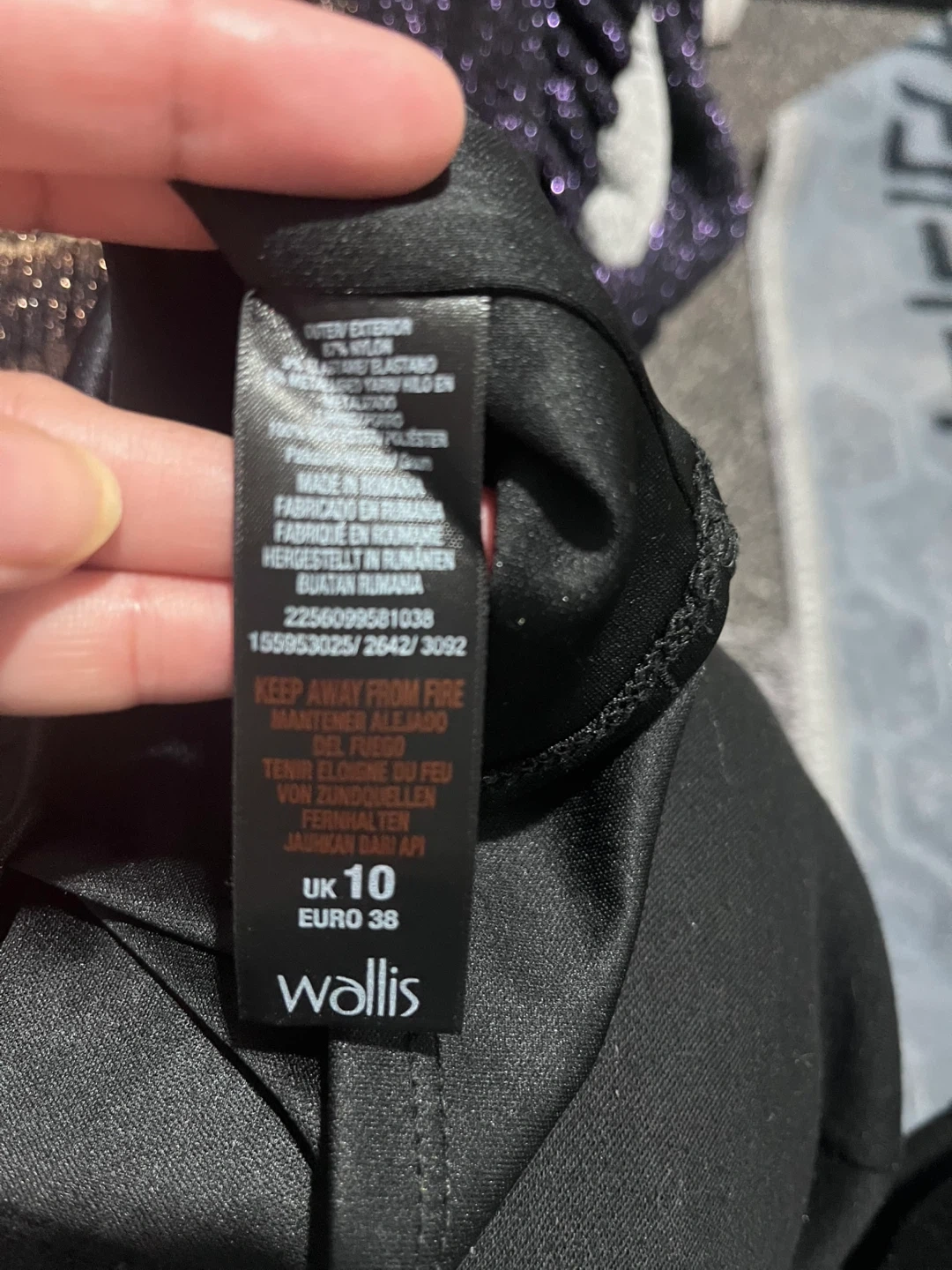 2 reviewsSelling a lovely Wallis dress in size 10. It's black with a sparkly pattern, perfect for a night out or special occasion. Made from a blend of nylon and elastane, it's both comfortable and flattering