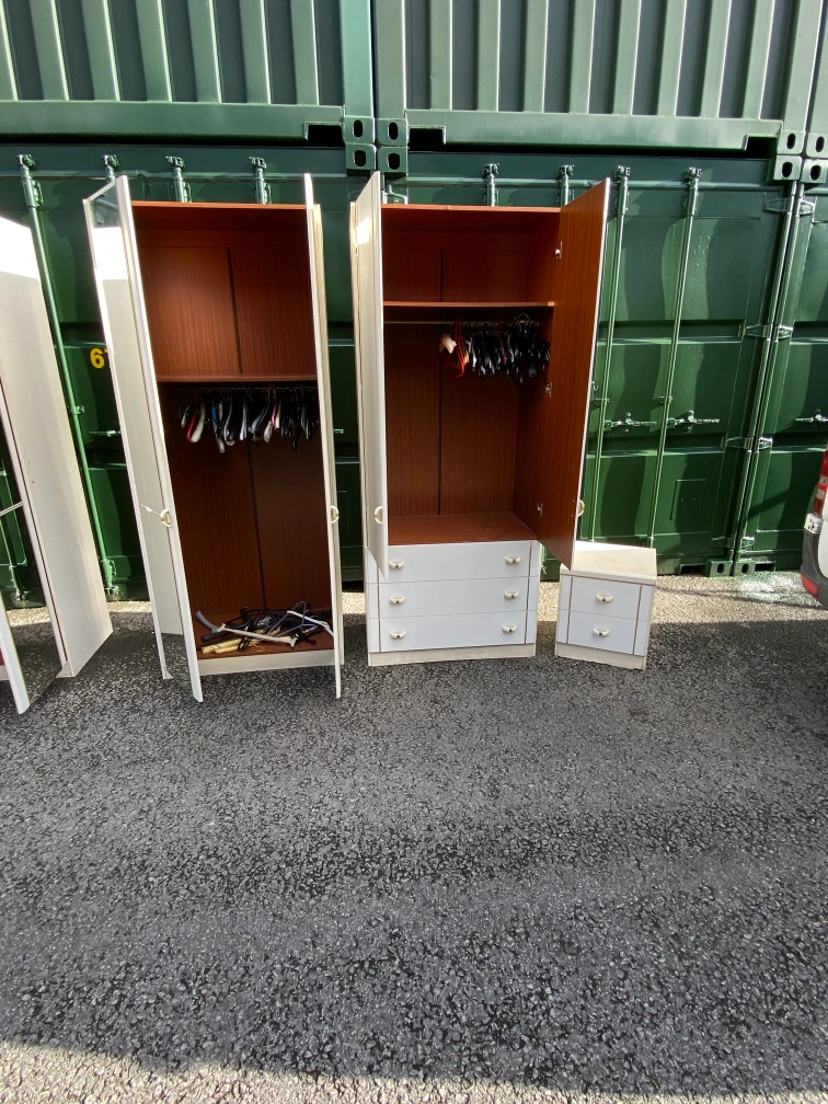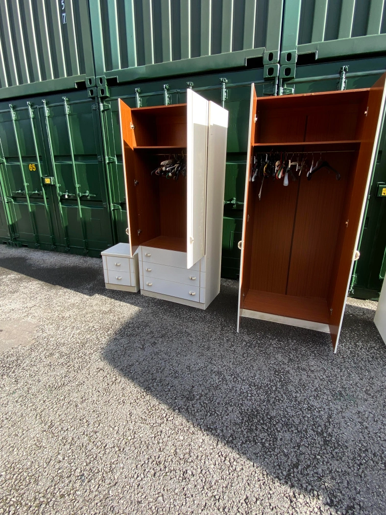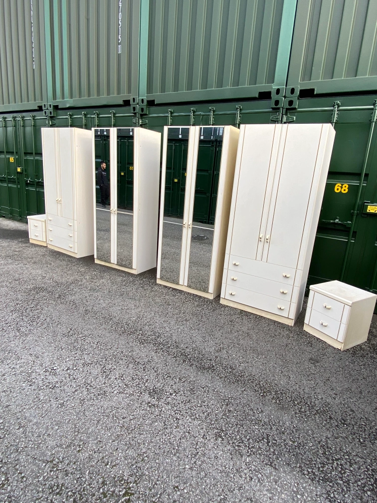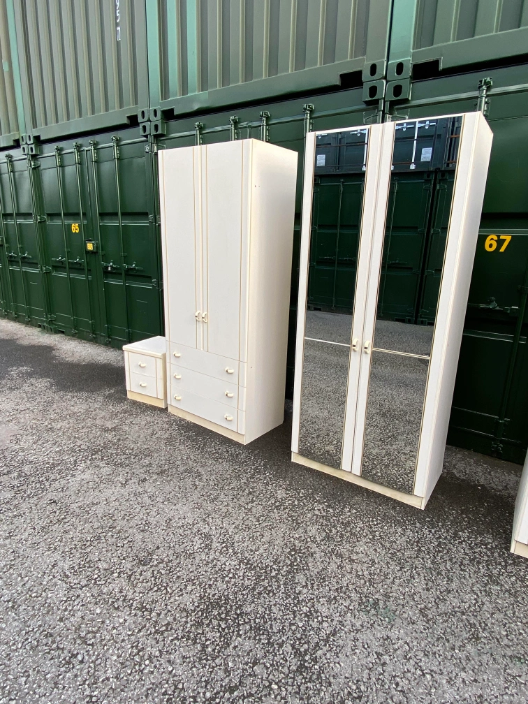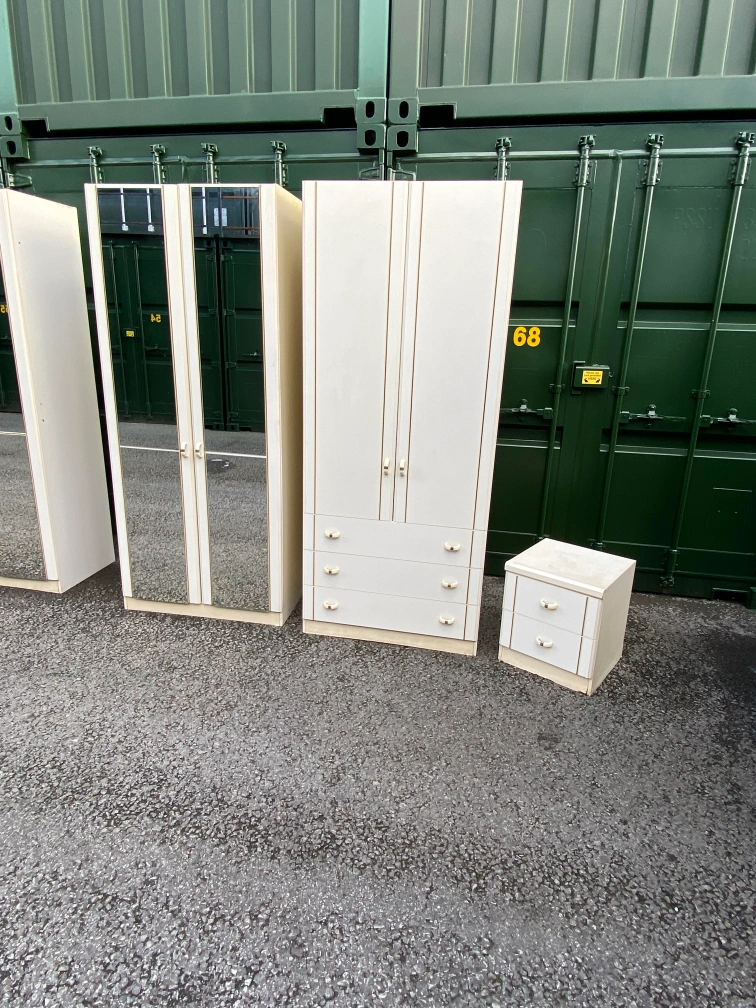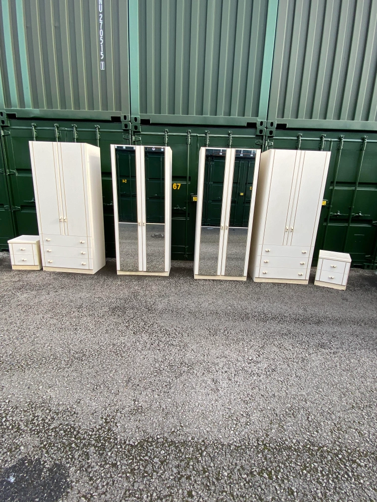 31 reviewsBedroom furniture set 2×wardrobes with mirror 2× wardrobes with 3 drawers 2×bedside table Pick up or delivery available for petrol cost Thank you 😊 Cash only please