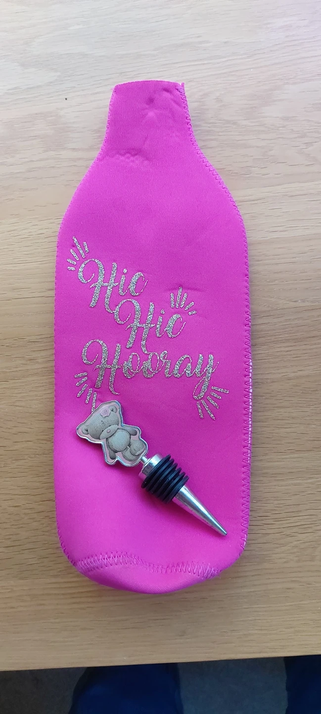 13 reviewslovely pink sparkly wine bottle cover and metal stopper..lovely condition ..Yardley b26 collection.. more things on my profile